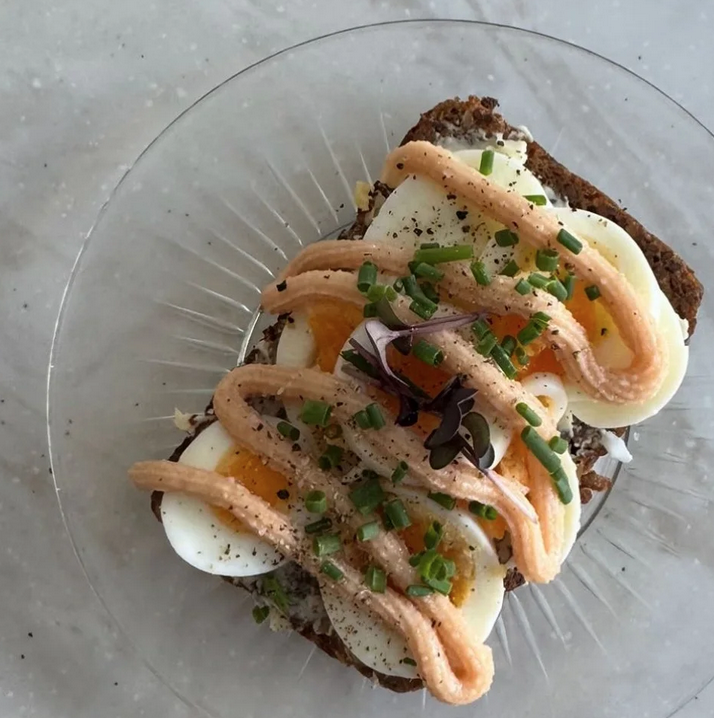 frukostsmörgås = surdegsbröd + smör + lagrad ost + honung + krasse 49