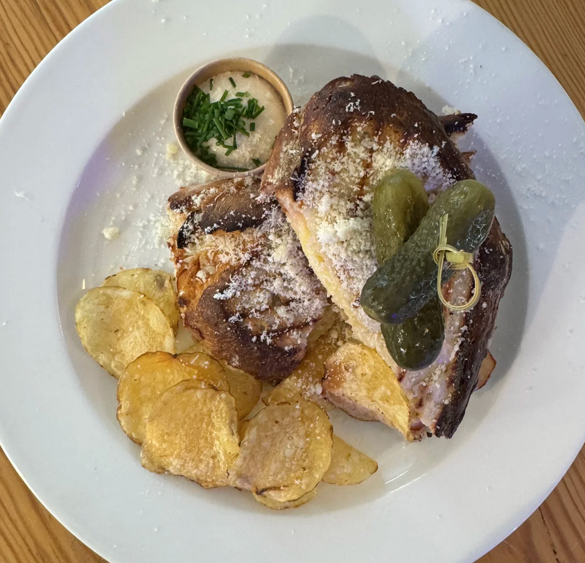 grillad surdegsmacka ( fråga efter dagen macka) + chip + tryffelmajonnäs 125