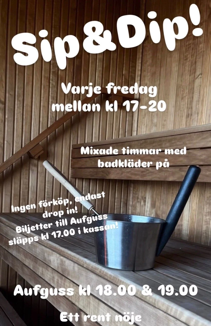 Välkommen på en mysig AW hos oss! Denna kväll kör vi badkläder på med härlig stämning.Sip – AW-priser i cafeet!Dipp – Mixat bad & bastu i badkläderAufguss kl 18 & 19